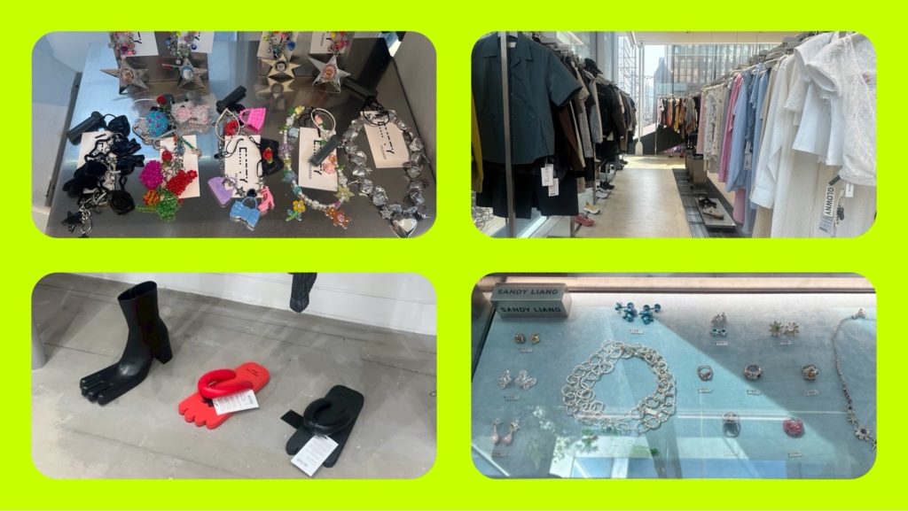 国内外からセレクトされた服や小物が整然と並ぶ空間。日本では見たことがないほど豊富なラインナップで、思わず時間を忘れてしまうほどの見応えだった。